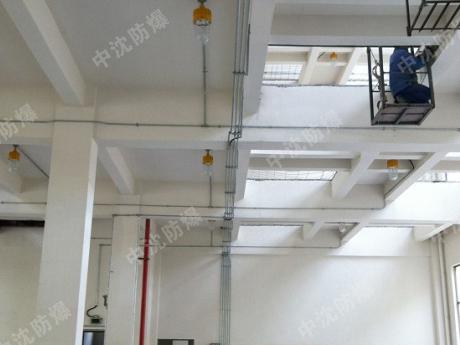 生產車間的防爆燈應用。在自動化生產車間現場,我們采用了隔爆型防爆燈為企業提供照明解決方案,該防爆燈采用吸頂式安裝方式,燈具由防爆活接頭連接至頂部的防爆接線盒。電線電纜由鍍鋅管出來之后,經防爆撓性連接管連接至燈具頂部的防爆接線盒,為燈具提供電力。