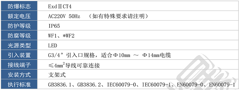 > 適用于ⅡA、ⅡB、ⅡC 類(lèi)爆炸性氣體環(huán)境。