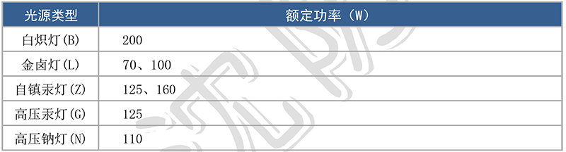 > 本燈具出廠時(shí)不配光源,由用戶自配。