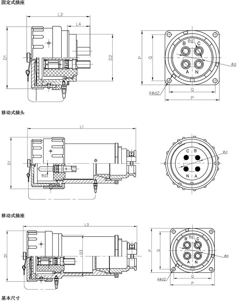 > 插頭座采用 ZL-102 壓鑄鋁合金,接觸件鍍銀,接觸可靠,接線方便,密封和絕緣性好,具有防水,防塵,防震等特點。