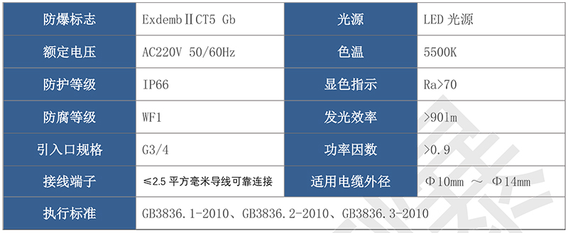 > 廣泛用于石油開采、煉油、化工、軍工等危險環境及海洋石油平臺、油輪等場所作普通照明和作業照明之用;